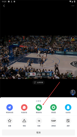 3、在分享選項的欄中,找到并點擊微信好友選項,即可分享成功。