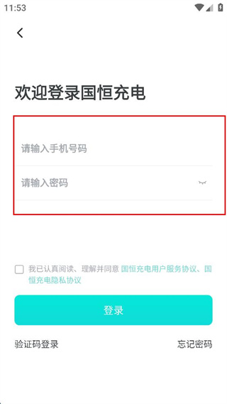 4、在登錄界面填寫手機號碼與密碼,勾選相關協議后點擊登錄按鈕完成操作。
