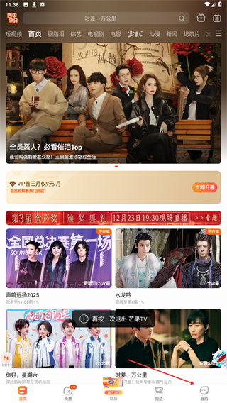1、啟動芒果TVAPP,進入到首頁內,點擊底部導航欄最右側的我的。