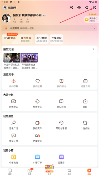 2、在我的頁面內,點擊右上方設置的功能按鈕。