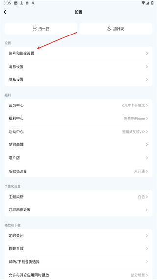 3、在設置頁面中,找到賬號和綁定設置選項并點擊,進入賬號管理界面。