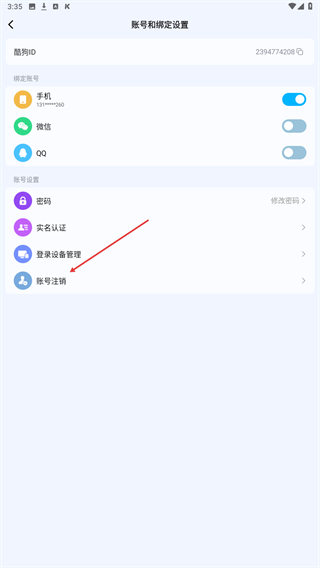 4、在賬號和綁定設置頁面里,找到賬號注銷選項并點擊,即可完成注銷。