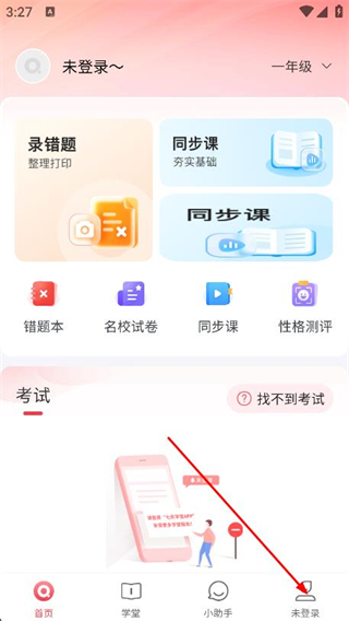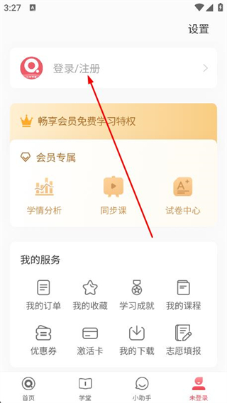 1、打開七天學堂,點擊底部導航欄未登錄選項。