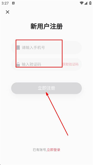 4、輸入手機號和驗證碼,點擊立即注冊即可完成注冊。