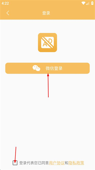 3、在登錄界面,勾選登錄代表您已同意用戶協議和隱私政策,點擊微信登錄并完成登錄操作。