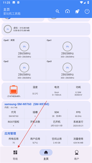 1、打開愛玩機工具箱APP,點擊導航選項。