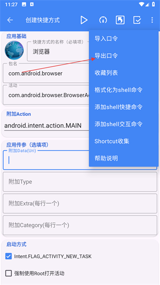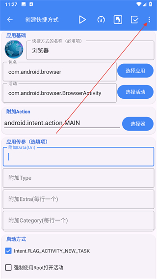 3、在創建快捷方式頁面,點擊三點菜單圖標。