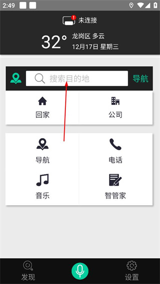 1、打開導航軟件,找到界面上方的搜索目的地輸入框,點擊該輸入框。