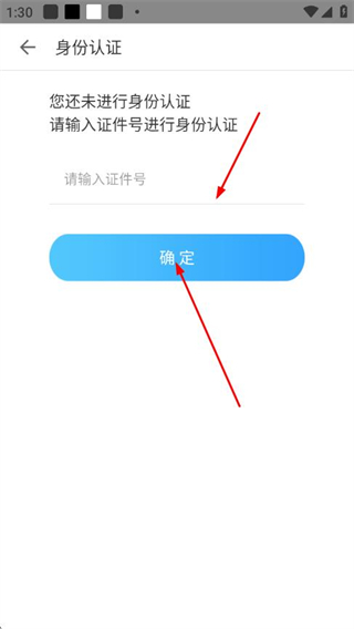 3、在身份認證頁面,輸入證件號后點擊確定。
