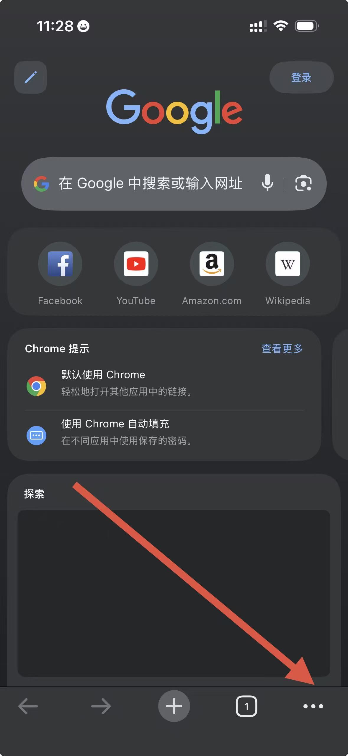 1、在瀏覽器界面,點擊右下角三個點圖標,彈出功能菜單。
