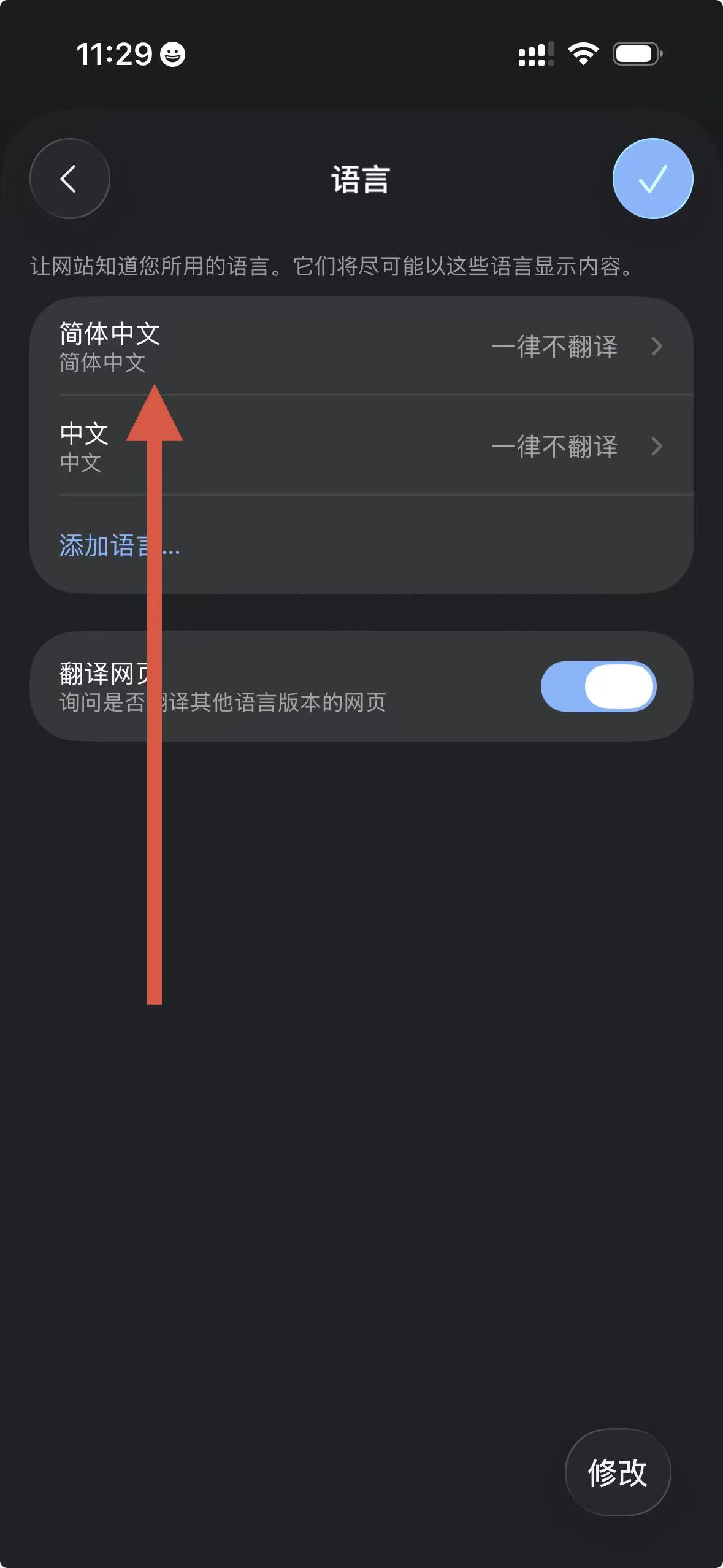 4、在語言設置界面,點擊簡體中文選項,即可完成中文設置操作。