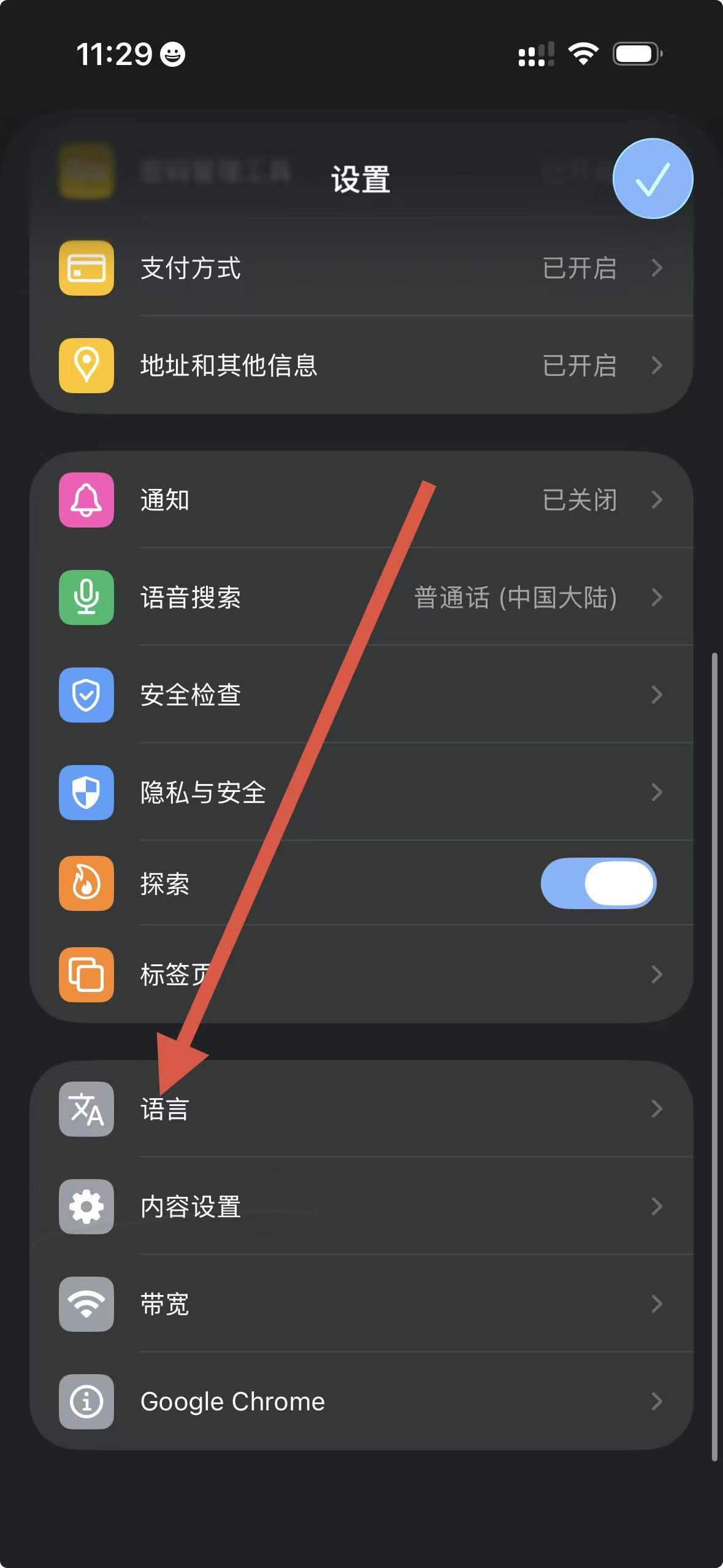 3、在設置頁面,點擊語言選項,進入語言設置界面。