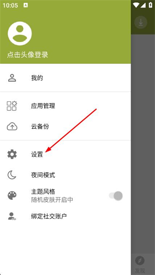 2、在側邊欄菜單中,找到并點擊下方的設置選項。