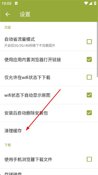 3、在設置頁面,點擊清理緩存,即可清理緩存數據。