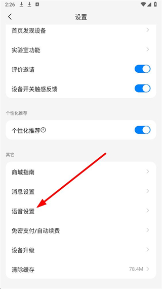 2、在設置頁面中,找到語音設置選項并點擊,進入語音相關的設置界面。