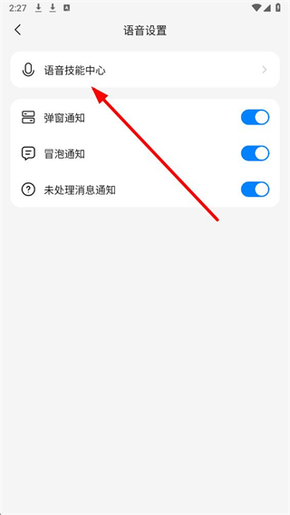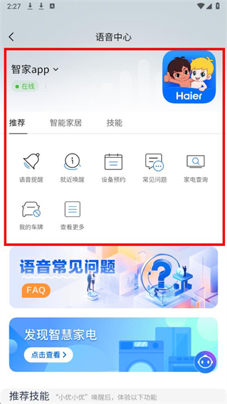 3、在語音設置頁面里,選擇語音技能中心選項,即可進入海爾智家的語音中心頁面。
