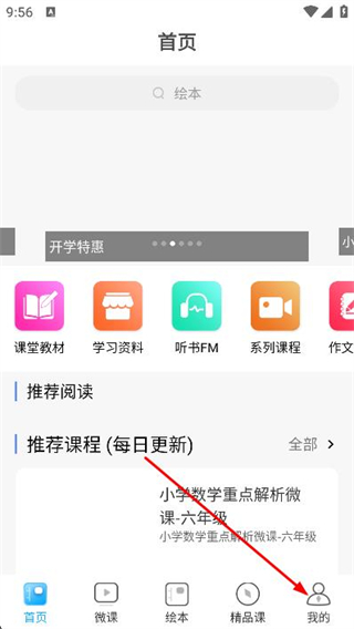 1、打開課本通小學英語,點擊底部導航欄我的選項。