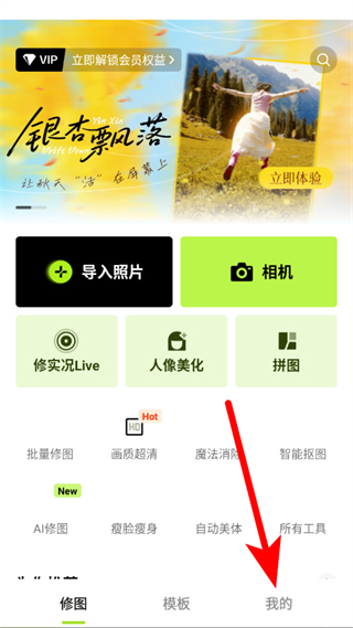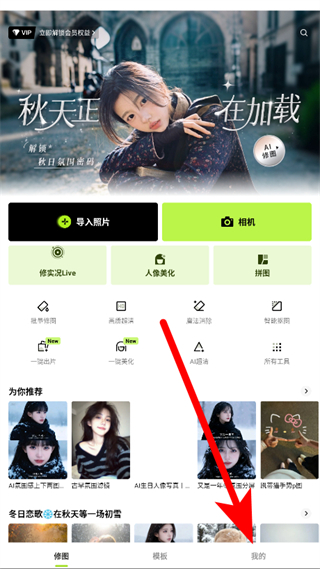 1、打開醒圖APP,點擊右下角我的,進入個人頁面。
