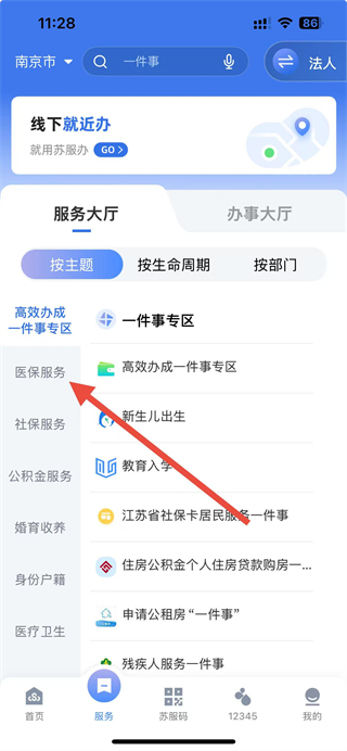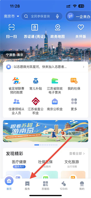 1、打開蘇服辦APP,點擊底部服務選項進入服務頁面。