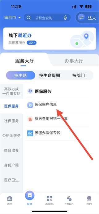 3、進入醫保服務頁面后,點擊醫保賬戶信息選項。