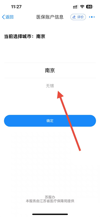 4、在醫保賬戶信息頁面,選擇所在城市后點擊確定,即可查詢醫保賬戶信息。