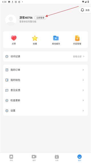 2、進入個人中心的頁面內,點擊上方立即登錄的功能按鈕。