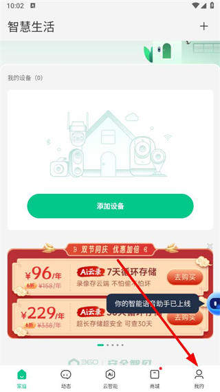 1、打開360智慧生活app,點擊右下角我的選項,進入個人頁面。