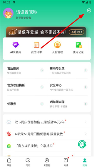 2、在個人頁面點擊右上角的設置圖標,進入設置界面。