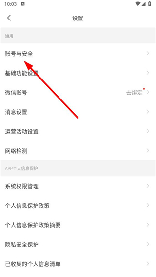 3、在設置界面點擊賬號與安全選項,進入賬號安全設置頁面。