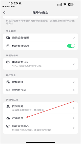 5、進入賬號與安全的界面內,點擊下方注銷賬號即可。