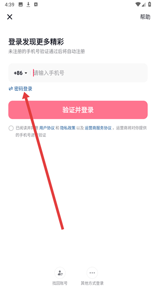 3、登錄界面點擊“密碼登錄”,切換至手機號密碼登錄方式。