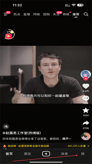 1、打開抖音的應用,進入首頁點擊導航欄我。