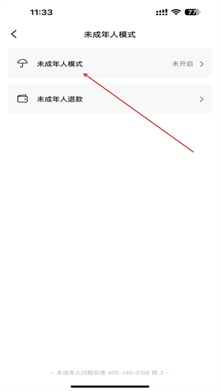 4、進入該頁面內,選擇并點擊未成年人模式。