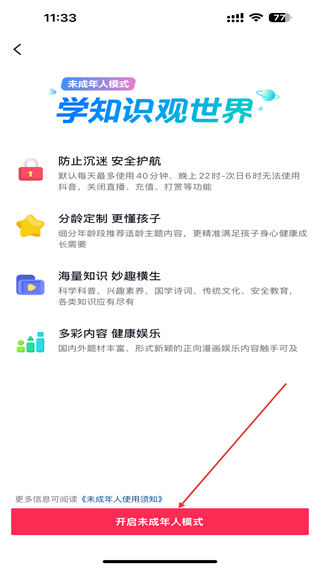 5、熟知后,點擊下方開啟未成年人模式即可。