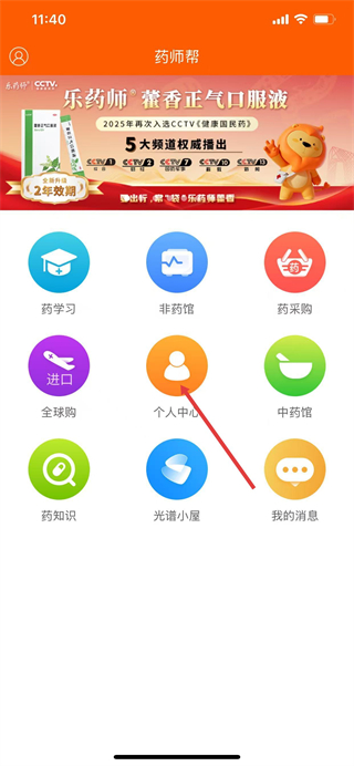 1、打開藥師幫,在主頁面點擊個人中心選項。