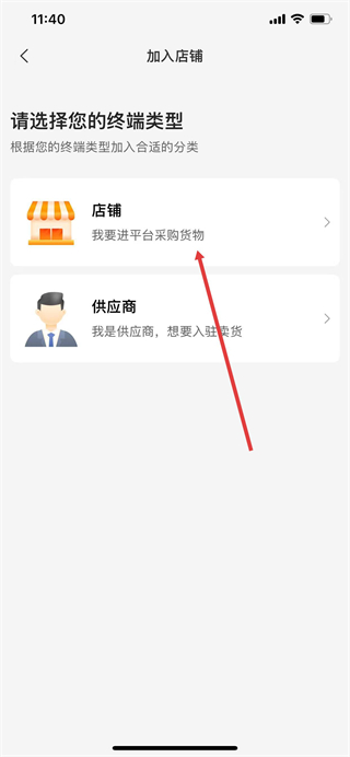 4、進入加入店鋪頁面后,選擇店鋪選項。