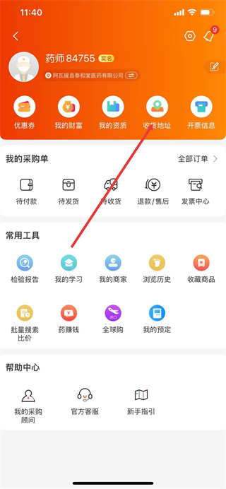 2、進入個人中心頁面后,點擊收貨地址選項。