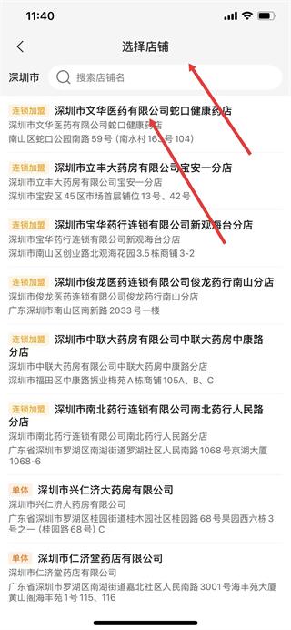 5、在選擇店鋪頁面,挑選目標藥店。