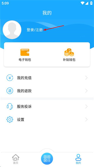 2、在我的頁面找到登錄注冊按鈕,點擊該按鈕,進入到登錄信息填寫界面。