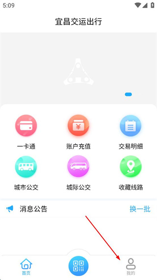 1、打開宜昌交運出行主頁,點擊底部導航欄的我的選項,進入對應的個人頁面。