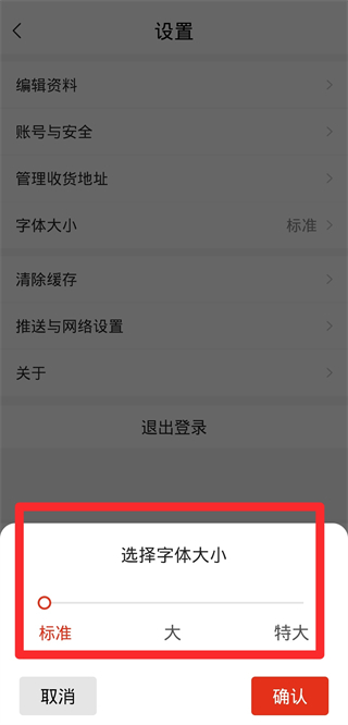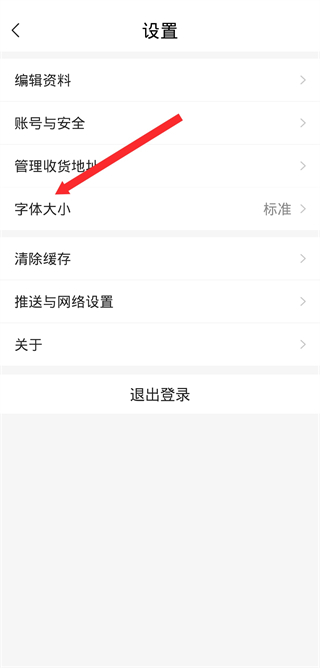 3、在設置頁面,點擊字體大小,彈出選擇字體大小的窗口。