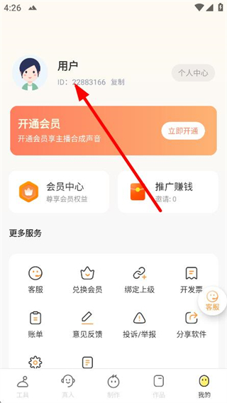 1、打開配音鴨app,點擊底部導航欄的我的選項。
