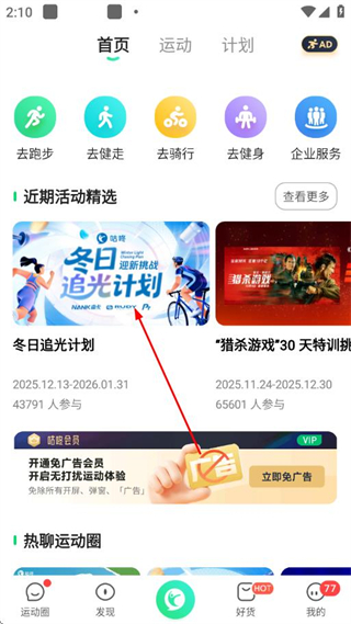 1、打開咕咚APP,在首頁的近期活動精選板塊中選擇目標活動。