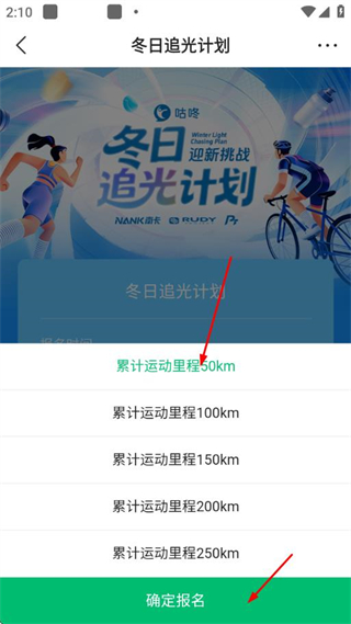 3、在報名頁面選擇參與的里程目標,點擊確定報名完成活動參與。