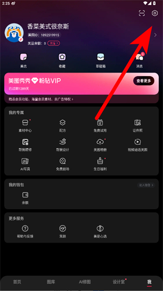 2、在個人頁面中點擊右上角設置圖標,進入設置頁面。