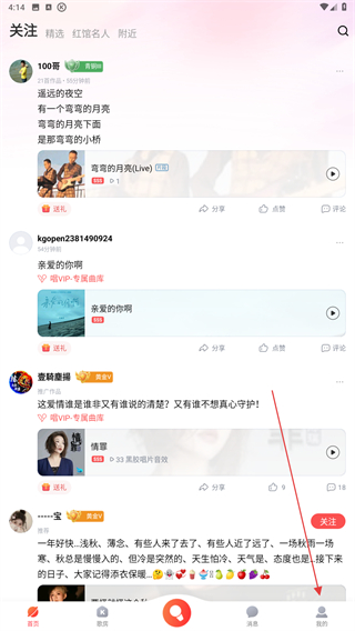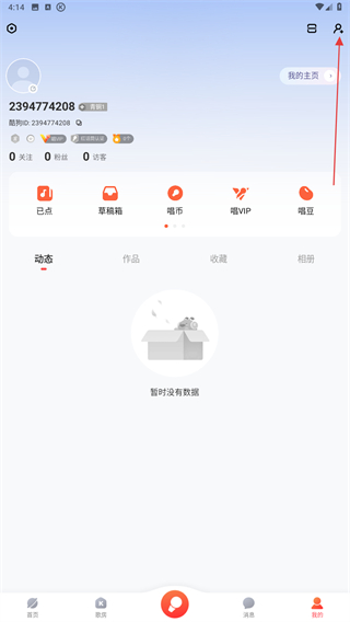 1、打開酷狗唱唱的APP,在首頁右下角點擊我的圖標。