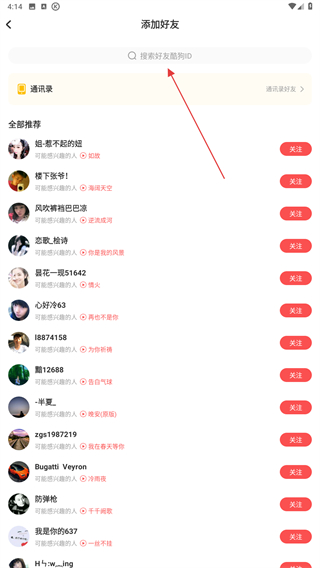 4、在輸入框內輸入用戶名稱后,再點擊搜索按鈕即可。