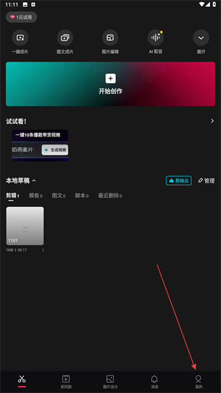 1、打開剪映APP,進入首頁點擊右下角我的圖標。