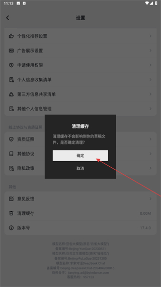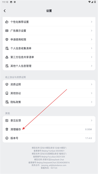 3、在設置的界面內,向下滑動點擊清理緩存的按鈕。