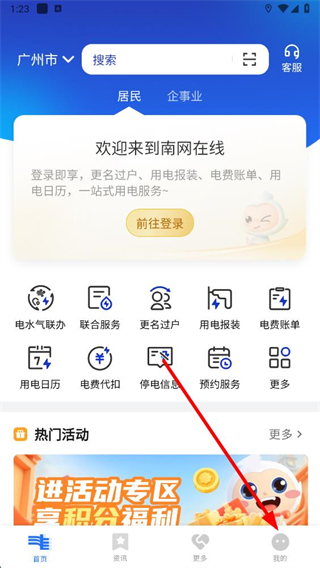 1、打開南網在線APP,在首頁點擊右下角我的選項。